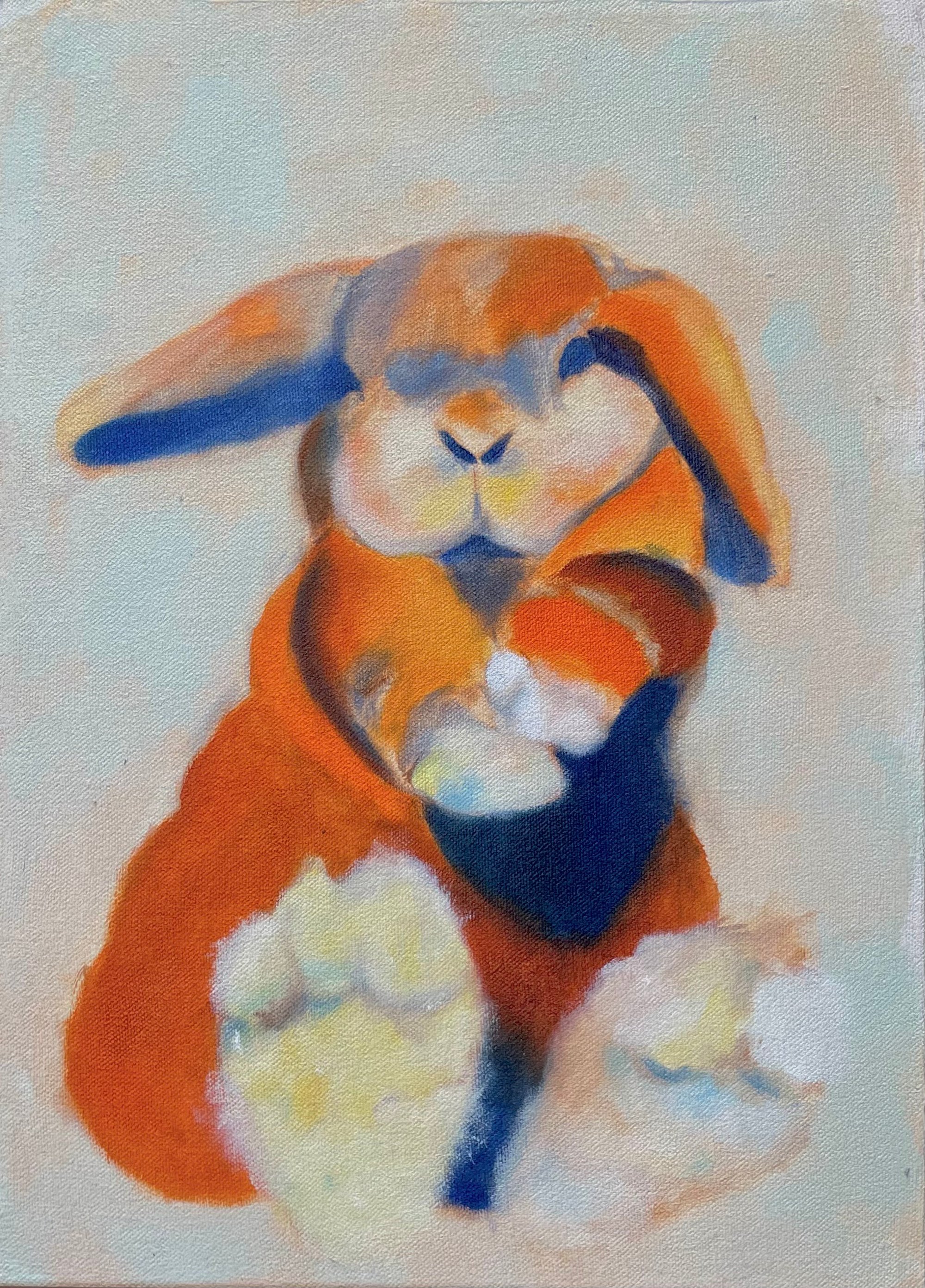 Oil painting of a lop rabbit on canvas